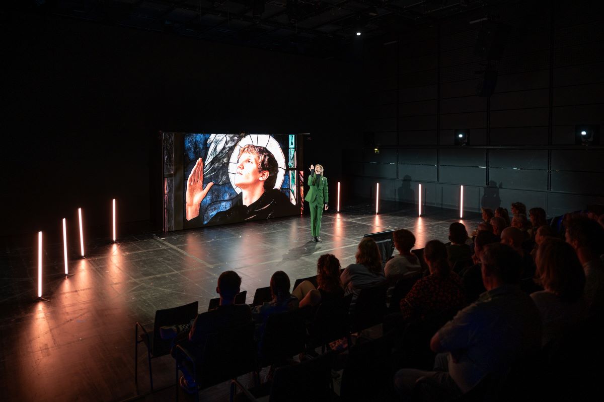 „Kostja“ ist eine verstörende Reise von der physischen in eine digitale Welt. Als Kostja mit dem digitalen, lebensechten Abbild auf der Leinwand zu sprechen begann, jagte das dem Publikum kalte Schauer über den Rücken.